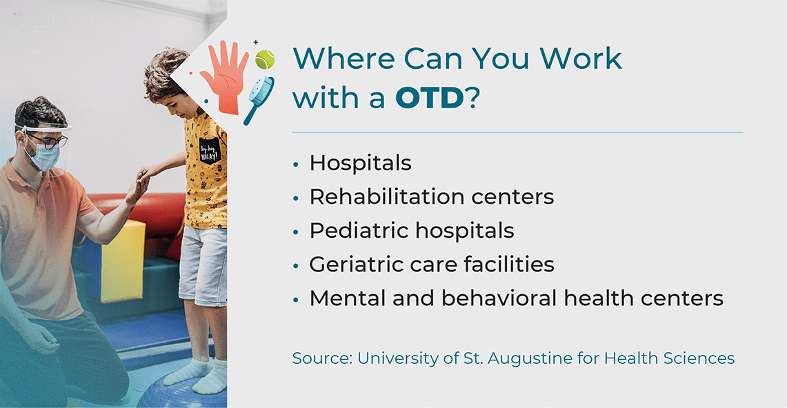 Having a doctorate versus a master’s degree in the field of occupational therapy may pave the way for additional options in your career. In a Doctor of Occupational Therapy (OTD) program, you will learn about field leadership and how to make impactful changes through policymaking and advocacy. A doctorate in occupational therapy gives you the expertise you need to work on changes that can help make the world better for those with cognitive and physical challenges. Unlike some doctorate programs, an OTD requires a capstone project rather than a dissertation.