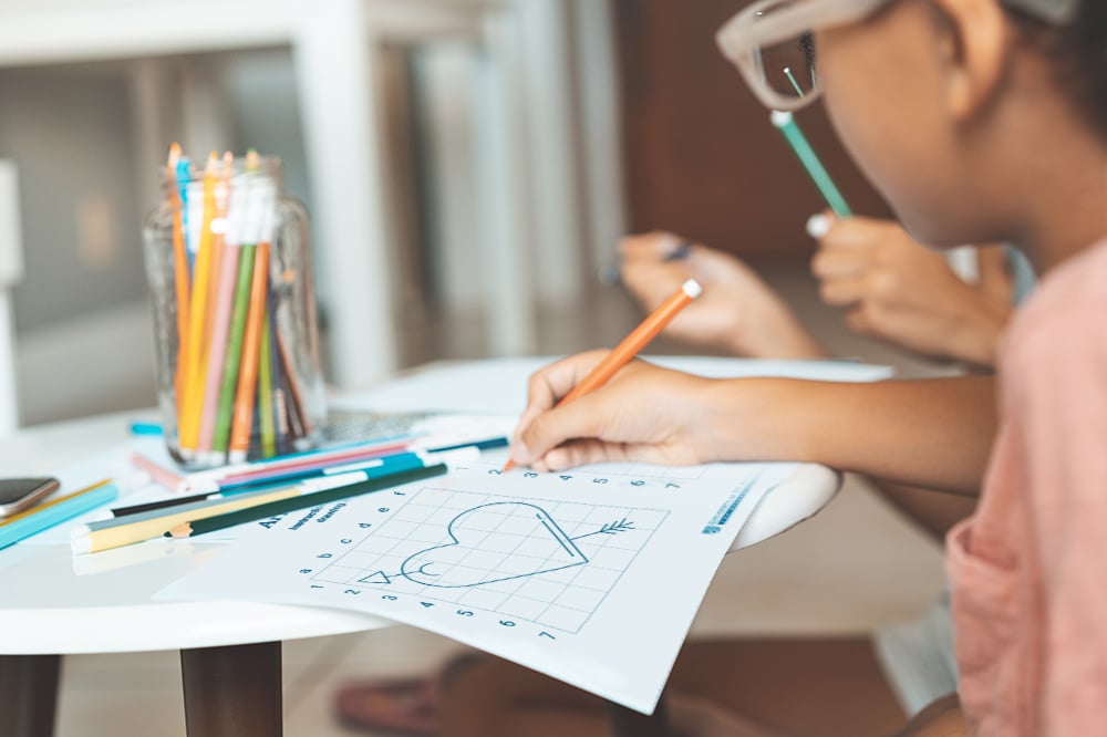 Grid drawing aids kids with observational and drawing skills. Breaking the drawing down into smaller sections helps them understand how shapes fit together and how to observe detail. Coloring in the picture will again help strengthen their hand muscles.