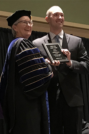 USAHS Alumni Award presented to DPT graduate for advancing the clinical practice of physical therapy.San Marcos, CA, January 29, 2018—The University of St. Augustine for Health Sciences (USAHS) is proud to honor alumnus Lucas Pratt, PT, DPT, OCS, MTC, FAAOMPT, with the university’s prestigious Patricia King Alumni Award, which is presented to outstanding alumni of the university in recognition of their commitment to professional development and achievement in the advancement of the clinical practice of occupational or physical therapy. The award is named for Dr. Patricia King, who led the university’s successful 1993 effort to gain national accreditation, which helped pave the way to becoming a broader health sciences university with programmatic and regional accreditation. The award recently was presented to Dr. Pratt, a 2012 graduate of the Doctor of Physical Therapy program, at the university’s commencement ceremony in California.