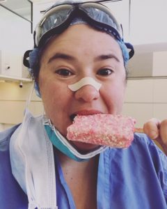 Of course, McMaster was not only working long hours—she was also earning her DNP. She credits faculty member Amy Herrington, DNP, RN, CEN, with helping her cope. “She checked up on me at least once a week,” McMaster says. There was also the COVID Power Hour, a support group for USAHS nursing students that Dr. Herrington co-founded. “You share what you’re going through,” says McMaster. “It’s a source of education and information.” From the relationships made in this group, nurses in California sent PPE to nurses in areas that were harder-hit earlier in the pandemic. A psychiatric nurse practitioner called “Dr. Jenn” provided emotional support, advice, and techniques for meditation and self-care.