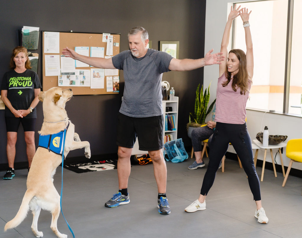 Harley, the center’s much-loved therapy dog, helps Melanie Lomaglio (right) out with a patient.